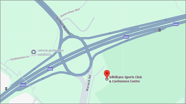 Located at J5 of the M42 (view location in Google Maps).